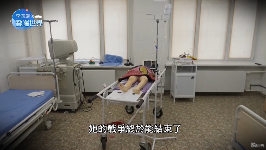急救了好久,用淚水代替宣布了孩子的死訊,醫護們將小小的外套,蓋在她小小的身軀上 (外套上沾了血漬) ,即便鏡頭刻意避開了小女孩的臉,卻拍到醫師輕輕的用手指,擦去她臉上的血漬及煙塵,再闔上她的雙臉